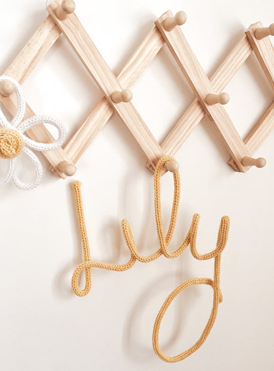 Handcrafted knitted wire names, words and shapes for the littlest loves in our life.
