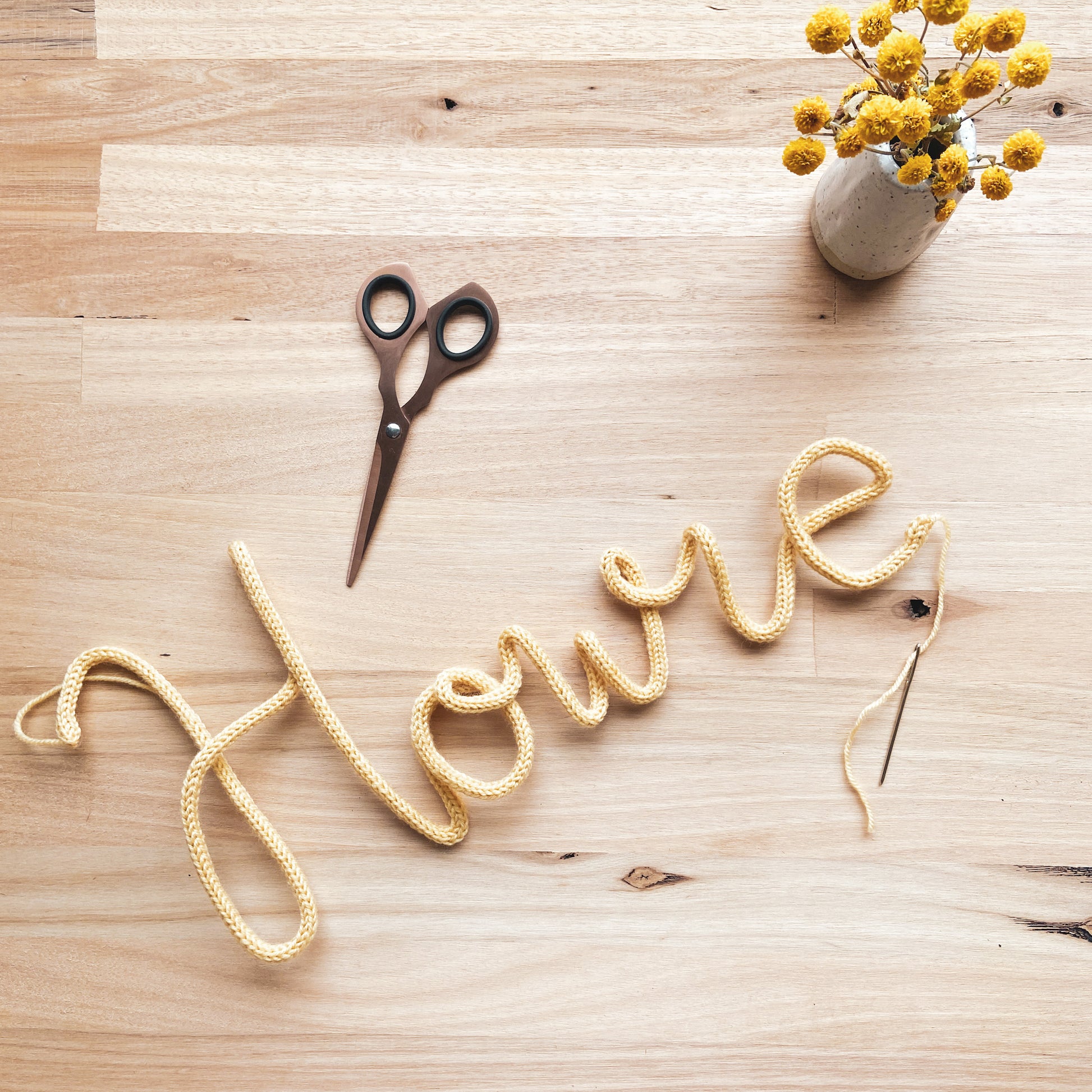 As an alternative way to hang your sign, each Custom Knitted Name will also come with a length of yarn that can be used to tie to the sign so that the sign can hang from it.