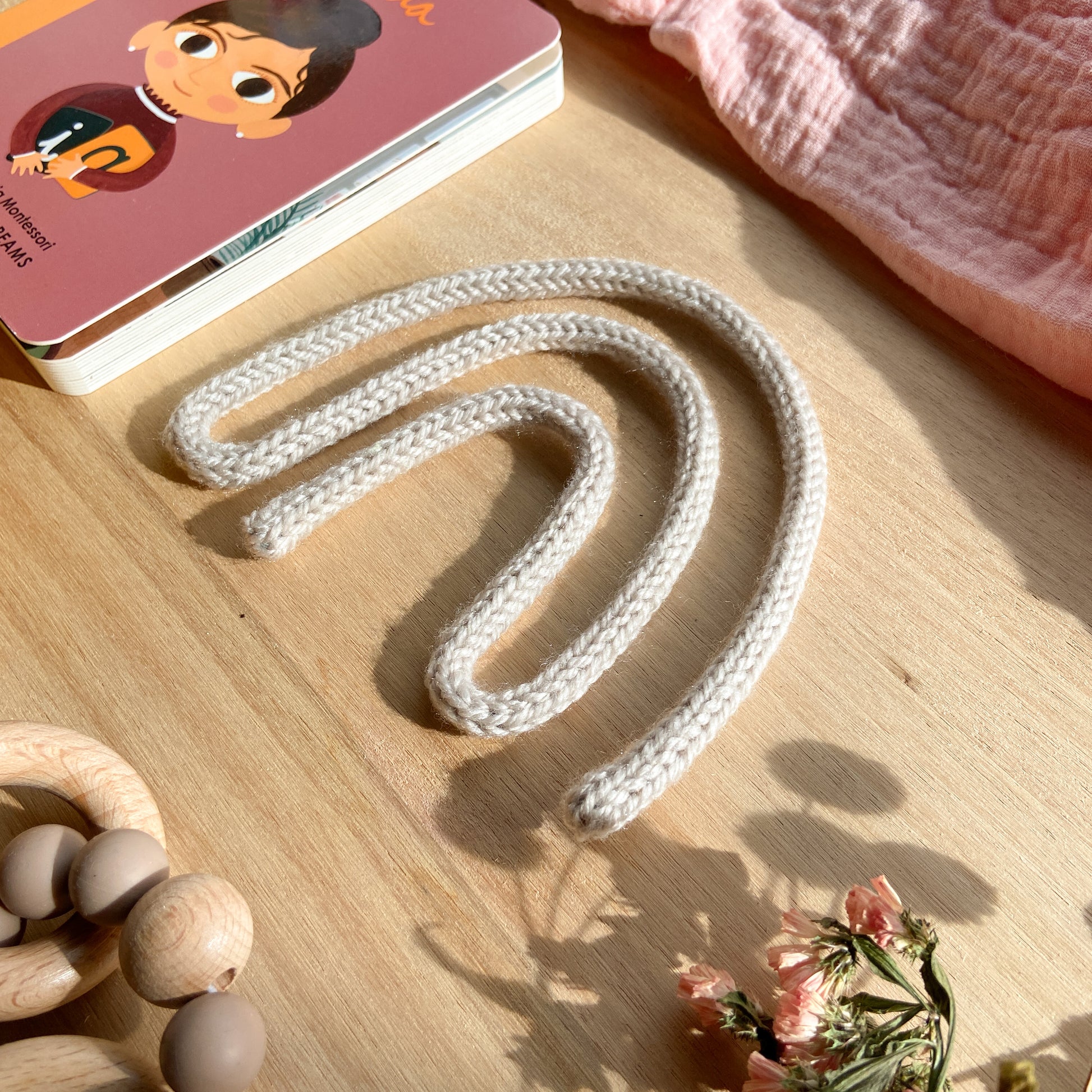 As this is a knitted piece, the internal wire may protrude with handling or in transit. Simply slightly stretch the knitted cord to gently push the wire back in.